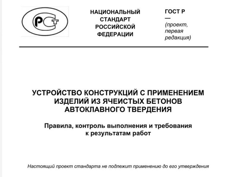 Проект ГОСТ Р "Устройство конструкций с применением изделий из ячеистых бетонов автоклавного твердения. Правила, контроль выполнения и требования к результатам работ" вынесен на публичное обсуждение.